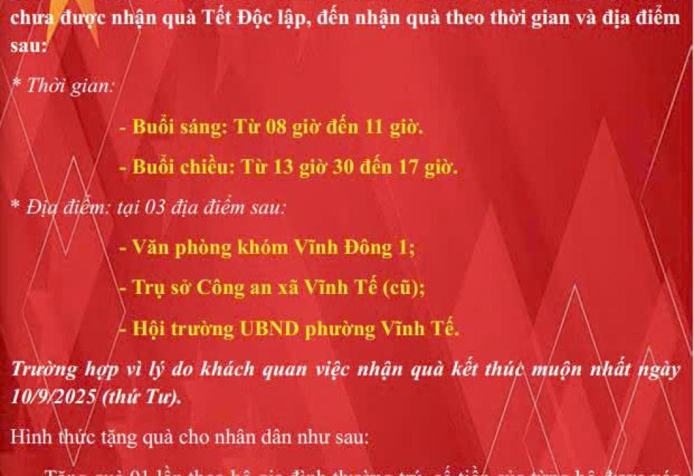 Thông báo về việc tiếp tục chi tặng quà nhân dân nhân dịp Tết Độc lập
