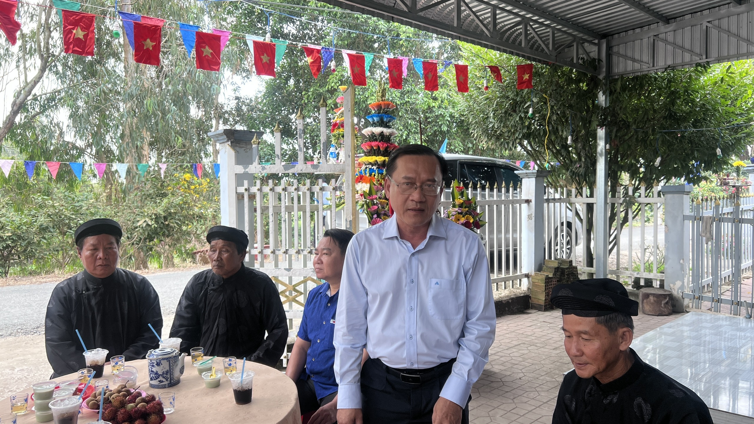 Đồng chí Trang Công Cường, Bí thư Đảng ủy, Chủ tịch HĐND phường phát biểu chúc mừng Ban Trị sự Phật giáo Hòa Hảo phường Vĩnh Tế