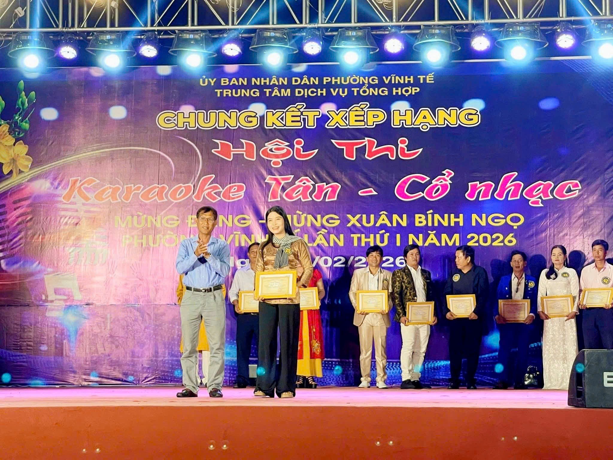 Hội thi karaoke tân - cổ nhạc phường Vĩnh Tế lần I, mừng đảng - mừng xuân năm 2026 là hoạt động văn hóa – văn nghệ ý nghĩa, góp phần tạo không khí vui tươi, phấn khởi, là sân chơi lành mạnh, bổ ích cho người dân dịp đầu xuân mới, góp phần gìn giữ, phát huy giá trị nghệ thuật đờn ca tài tử, niềm đam mê ca hát trong quần chúng nhân dân ở phường biên giới Vĩnh Tế./.