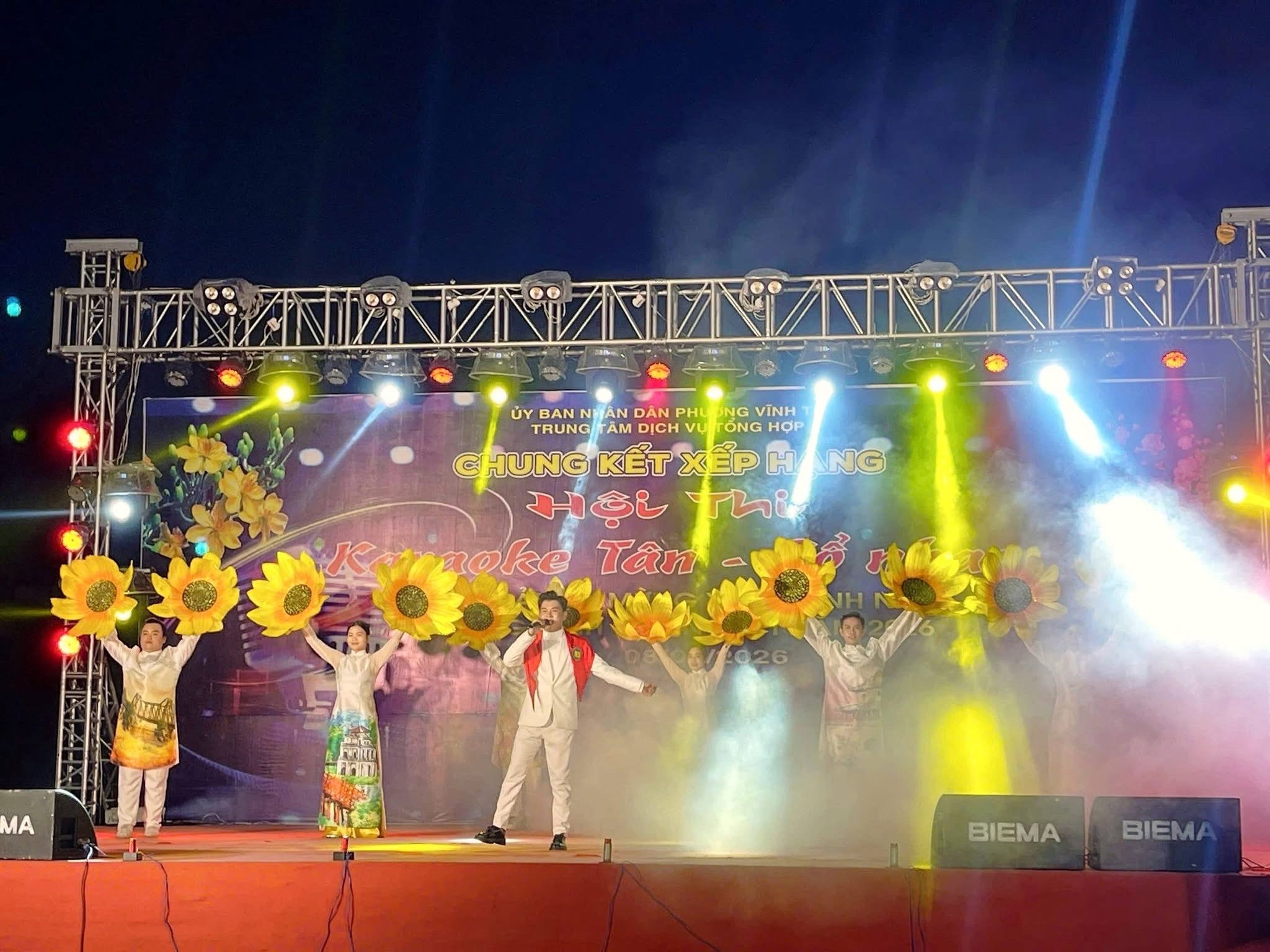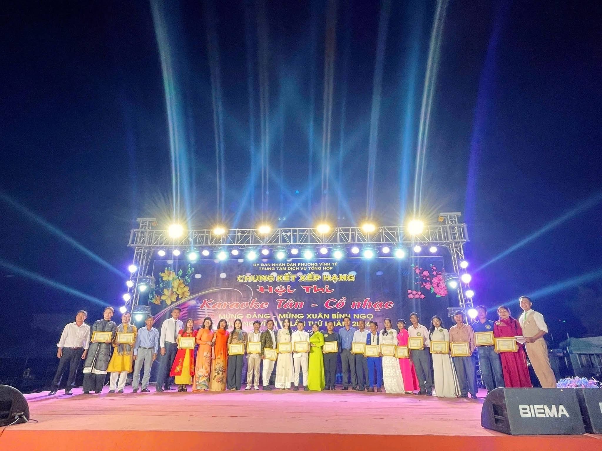 Tối ngày 08/2, UBND phường Vĩnh Tế tổ chức đêm chung kết xếp hạng hội thi karaoke tân - cổ nhạc phường Vĩnh Tế lần I, mừng đảng - mừng xuân năm 2026 tại Trung tâm Thương mại Vĩnh Đông, thu hút đông đảo khán giả và người dân đến xem.