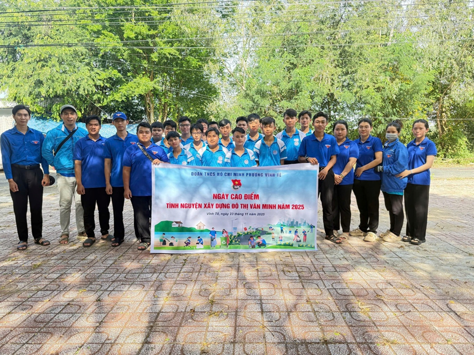 Chiều ngày 23/11/2025 Phường Đoàn Vĩnh Tế tổ chức hưởng ứng ngày cao điểm tình nguyện xây dựng đô thị văn minh năm 2025. Qua đó Phường Đoàn tổ chức ra quân dọn dẹp xóa bảng quảng cáo trên tuyến đường Lê Hồng Phong. Qua đó góp phần tuyên truyền đến đoàn viên thanh niên và nhân dân thuộc tuyến dân cư nhận thức hơn về xây dựng cảnh quan đô thị, tích cực tôn tạo môi trường sinh hoạt của gia đình, xóm làng ngày càng Sáng - Xanh - Sạch - Đẹp.