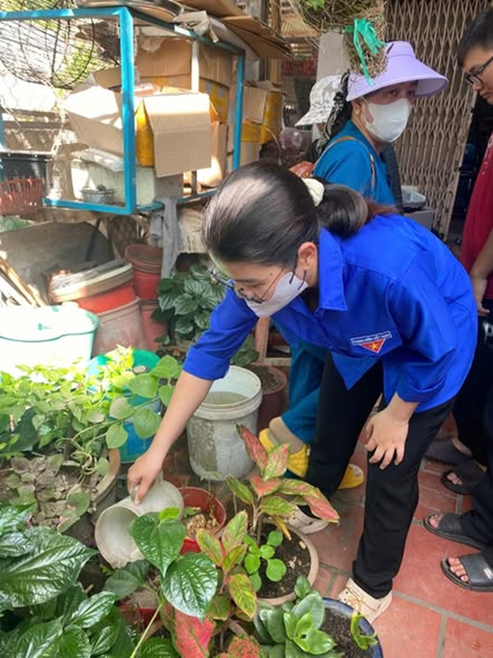 Qua đó Phường Đoàn phối hợp cùng Trạm Y tế phường ra quân vệ sinh môi trường và tuyên truyền vận động người dân các khóm loại bỏ vật dụng chứa lăng quăng phòng chống sốt xuất huyết trên địa bàn phường